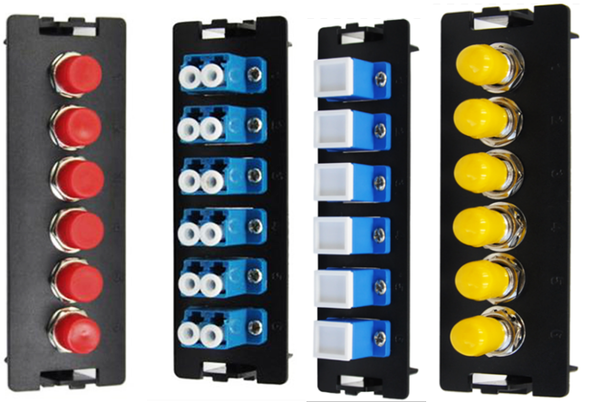 10G-Link offers a variety of loaded fiber optic adapter plates that utilize the universal compatible design. Choose from many standard SC, LC, FC and ST connector options to customize a patch panel for your specific fiber network. All single mode fiber adapters use zirconia split sleeves for optimal performance and reliability whereas,  multimode adapters are available with phosphorous bronze split sleeves. Optional blank filler panels are available for securing the fiber area from front access when use of all slots of the fiber patch panel are not required. Adapter plates are available in both beige and black.