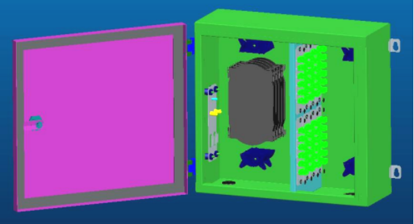 Outdoor wall type fiber optic distribution frame is mainly used for connecting the outdoor optical cables, optical patch cords and optical pigtails. It can be wall mounted or pole mounted, and facilitates the test and refit of the lines.