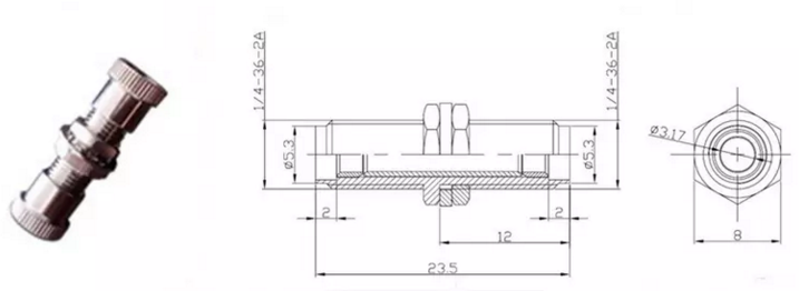 Fiber Optic  SMA 905  Female-Female Adapter is an air-spaced mating sleeve for connecting two SMA-terminated fiber optic cables. It is directly compatible with SMA905-style connectors, and one ceramic alignment sleeve is included for mating a SMA905-style connector to a SAM906-style connector. The SMA is an excellent choice for a robust, low-cost and reliable system.