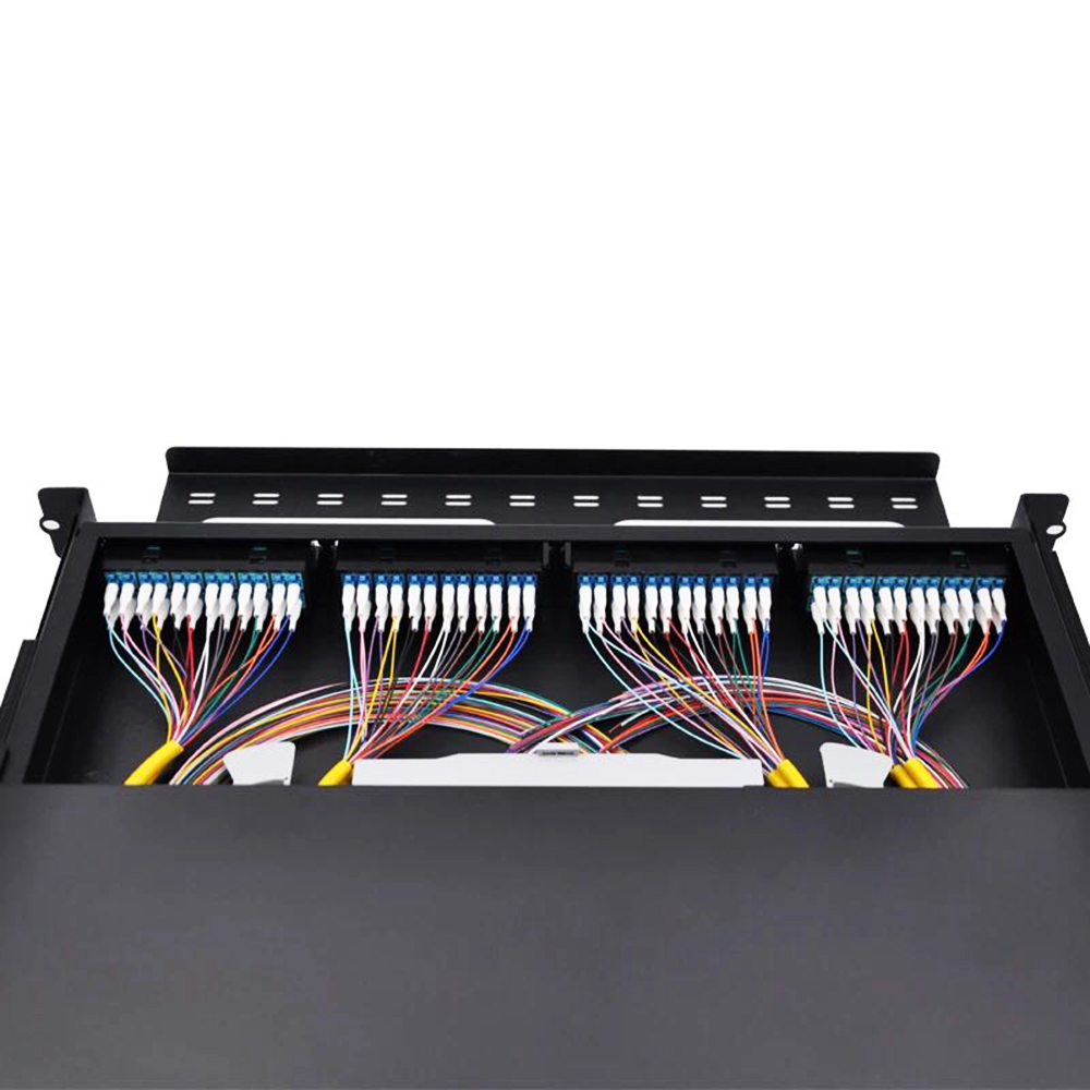 ODF-YZ96 is a 19’’ rack mounted fiber optic patch panel that made of cold-roll steel, with plastic splice tray inside, suitable for pigtail, ribbon and bunch cable distribution. And it has metal sliding fittings with self-locking functions prevent the drawer from falling when moved.