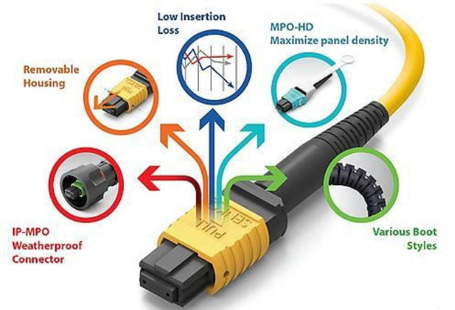 Fiber Optic Adapters, MTP/MPO These fiber optic adapters are for connecting MTP or MPO cables together where each cable has up to 12 fibers.These adapters have colors that are appropriate for multimode OM4 (aqua), and singlemode (blue). There is also black which does not signify any particular medium. These also come in a standard MPO footprint, SC connector footprint, and one appropriate for keystone panels.