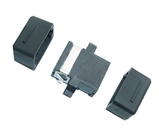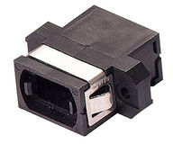 This MTP/MPO Connector Adapter has a SC Footprint, Full Flange, is Black, and comes with 2 Dust caps. The adapter body is made of Polyethermide, the spring clip is made of stainless steel, and the dust cap is made of polycarbonate, all to reduce the potential for debris generation. This adapter is configured with an Opposed Key Orientation, meaning that the connectors are key-up to key-down.