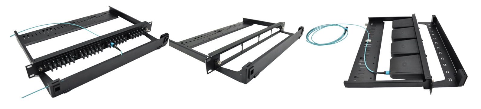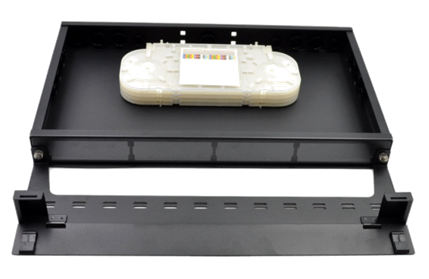 10G-Link MPO 1U Patch Panel is used in data center cabling region, and connected the ports with cable to the back of the panel. it is usually assembled in 19 inch frame rack and cabinet. You can assemble with LC adapter panel. and it can finish 1U 96 cores splicing.